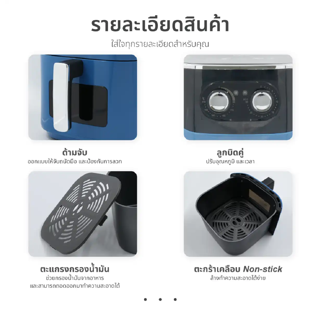 - ตะแกรงทอดสามารถถอดล้างได้ง่าย